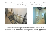 Espace directement ouvert sur rue, ce local dispose d’un RDC d’une superficie de 70 m2, avec cuisine et toilettes,